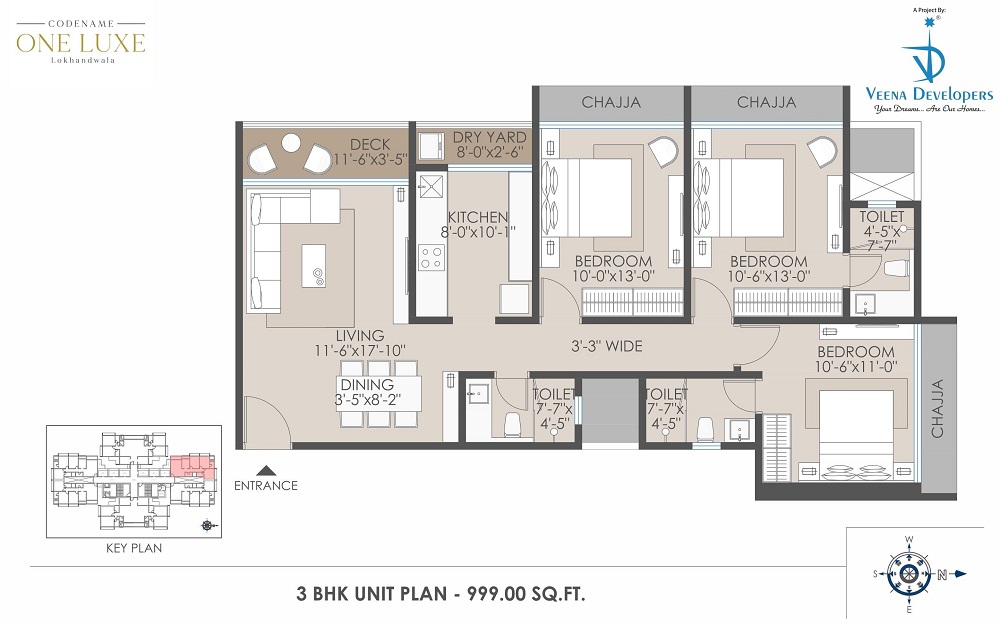 | 3 BHK | 999 sqft | ₹ 4.50 Cr* Price Breakup |