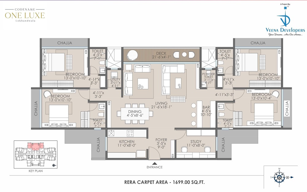 Veena One Luxe Project will be constructed on 1 acre of land parcel cosisting of 1 tower with 3 Basement+Ground+7 Podium+25 floors having 3BHK, 4BHK premium residences. Veena One Luxe Project is located On New Link Road, Lokhandwala, Andheri West, Mumbai with - Infiniti Mall - 100m, Lower Oshiwara Metro Station - 300m, Jogeshwari Station - 2.1km. Veena One Luxe Andheri West Project first is internal amenities - Vitrified Tiles, Granite Platform, ...